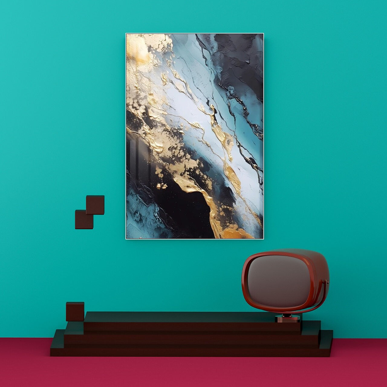 Abstraktes druckbares Kunstwerk, schwebender Rahmen, Marmor-Wandkunst, moderner gerahmter Leinwanddruck, blau-goldene Wohnzimmer-Wandkunst, Kunstwerk zum Verschenken
