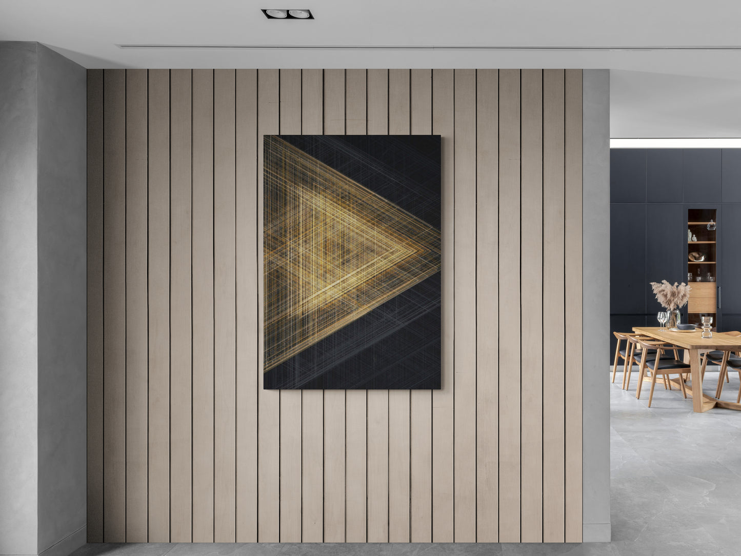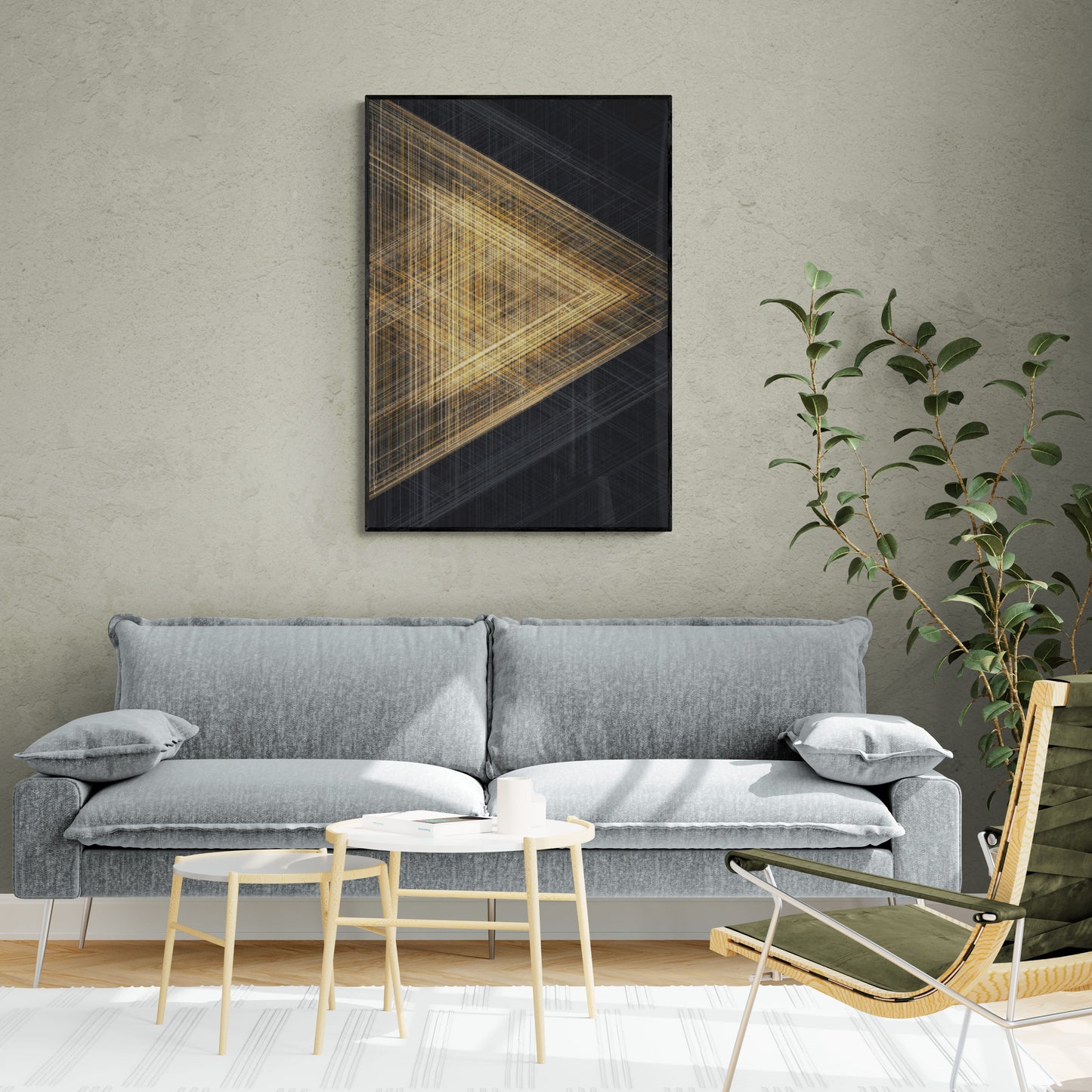 Dreieck-Wandbild, abstrakter schwarz-goldener Leinwanddruck, großer moderner Kunstdruck, konzeptionelle Wandkunst, gerahmte Wandkunst für das Wohnzimmer, Wandkunst als Geschenk spielt eine wichtige Rolle bei der Gestaltung der Atmosphäre und des Charakters Ihres Interieurs. Bilder verleihen jedem Raum Schönheit, Tiefe und Persönlichkeit. Gedruckte Bilder können zum zentralen Akzent im Raum werden, die Blicke auf sich ziehen und das Interesse der Besucher wecken.