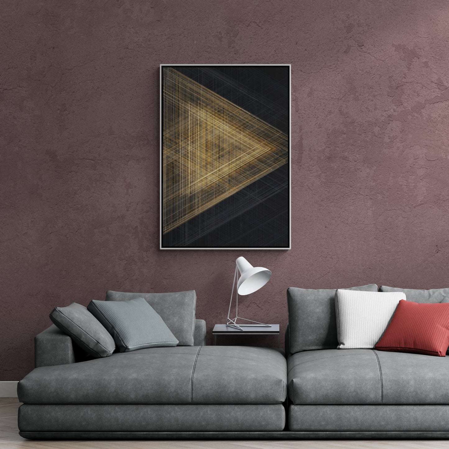 Dreieckige Wandkunst, abstrakter schwarz-goldener Leinwanddruck, großer moderner Kunstdruck, konzeptuelle Wandkunst, gerahmte Wandkunst für Wohnzimmer, Geschenk-Wandkunst