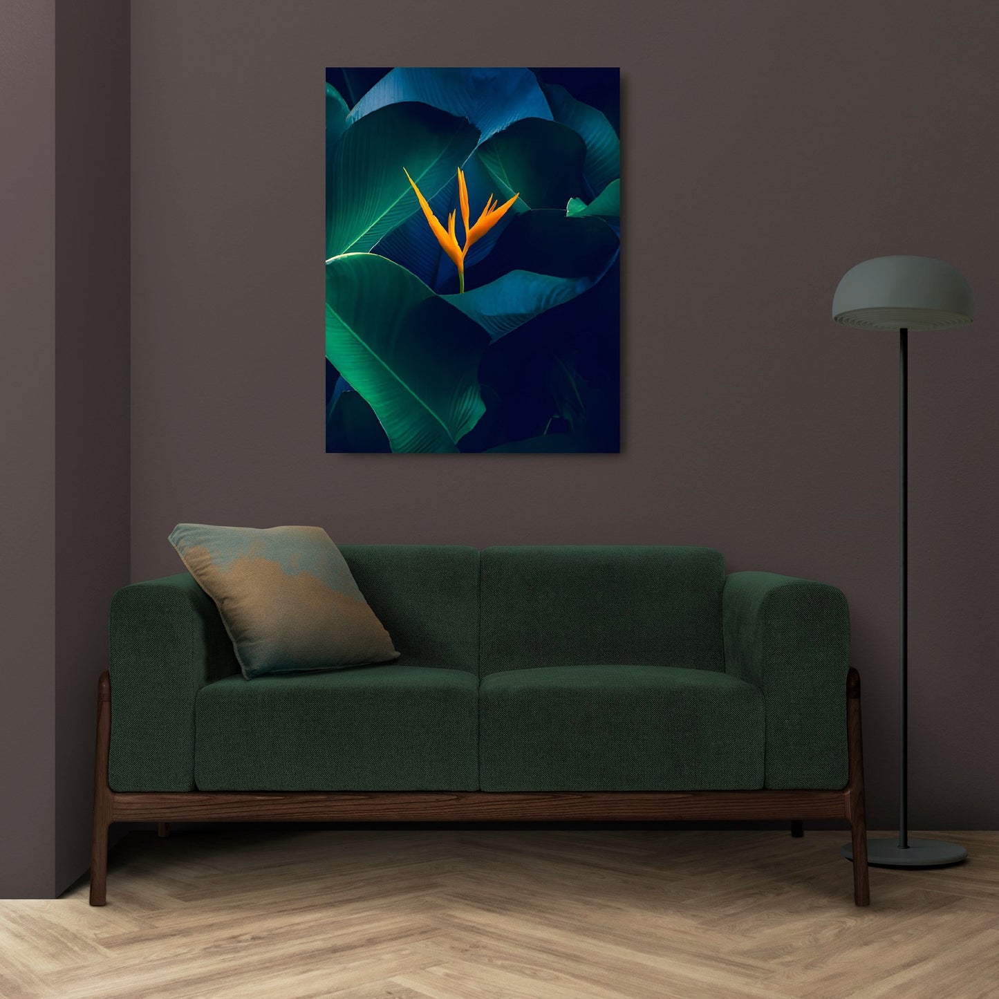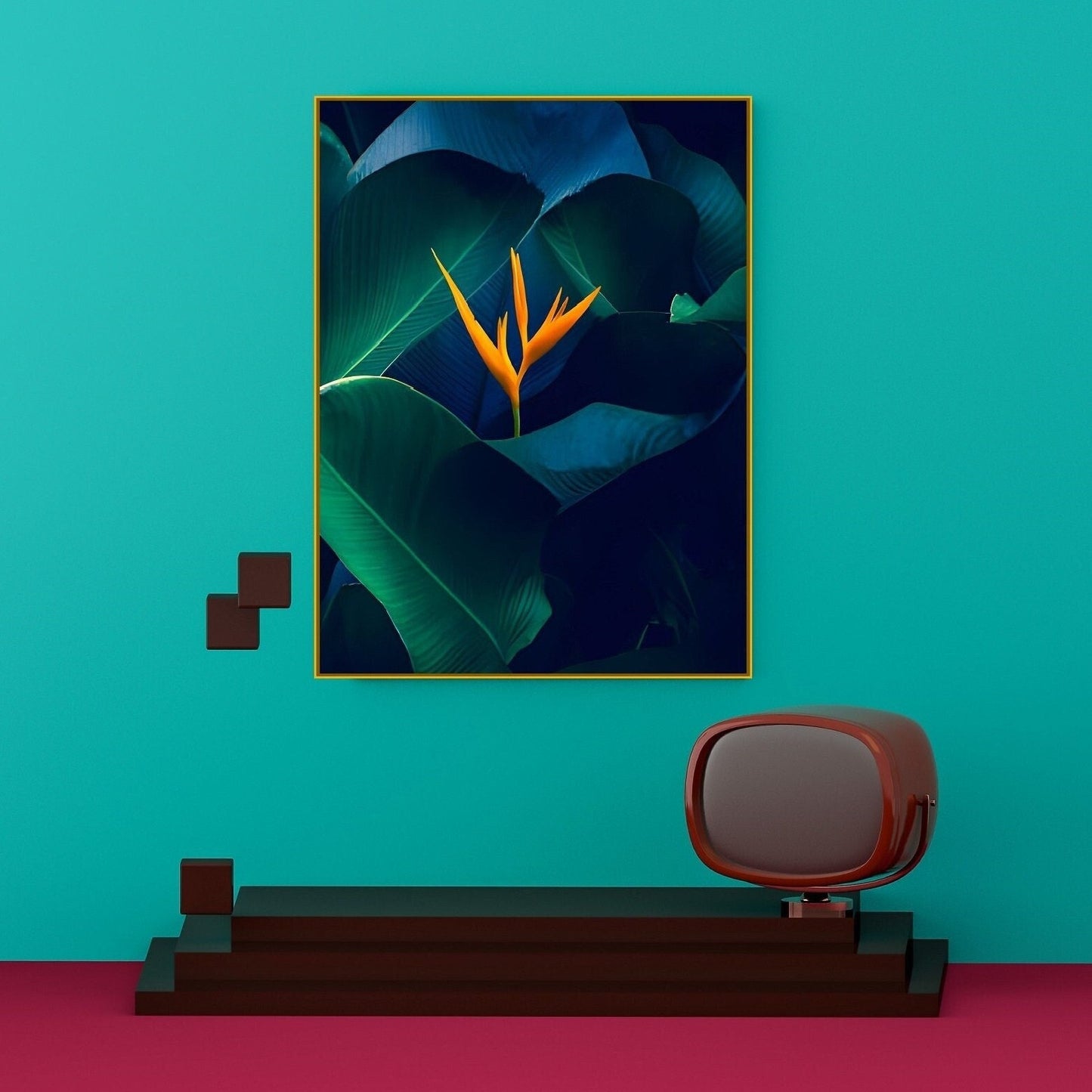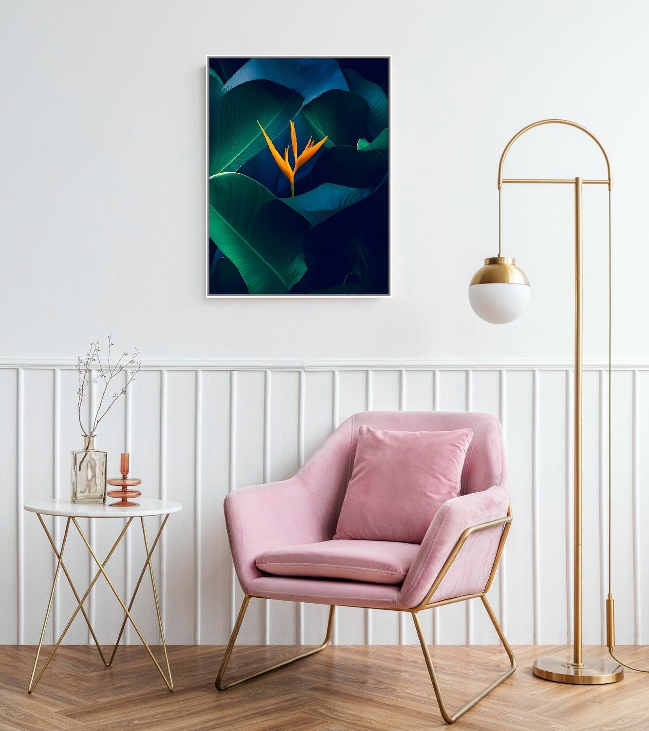 Botanische Wandkunst, großer Leinwanddruck mit Bananenblättern, florales Floater-Rahmen-Kunstwerk, grüne tropische Wandkunst, modernes Wohnzimmer-Kunstwerk