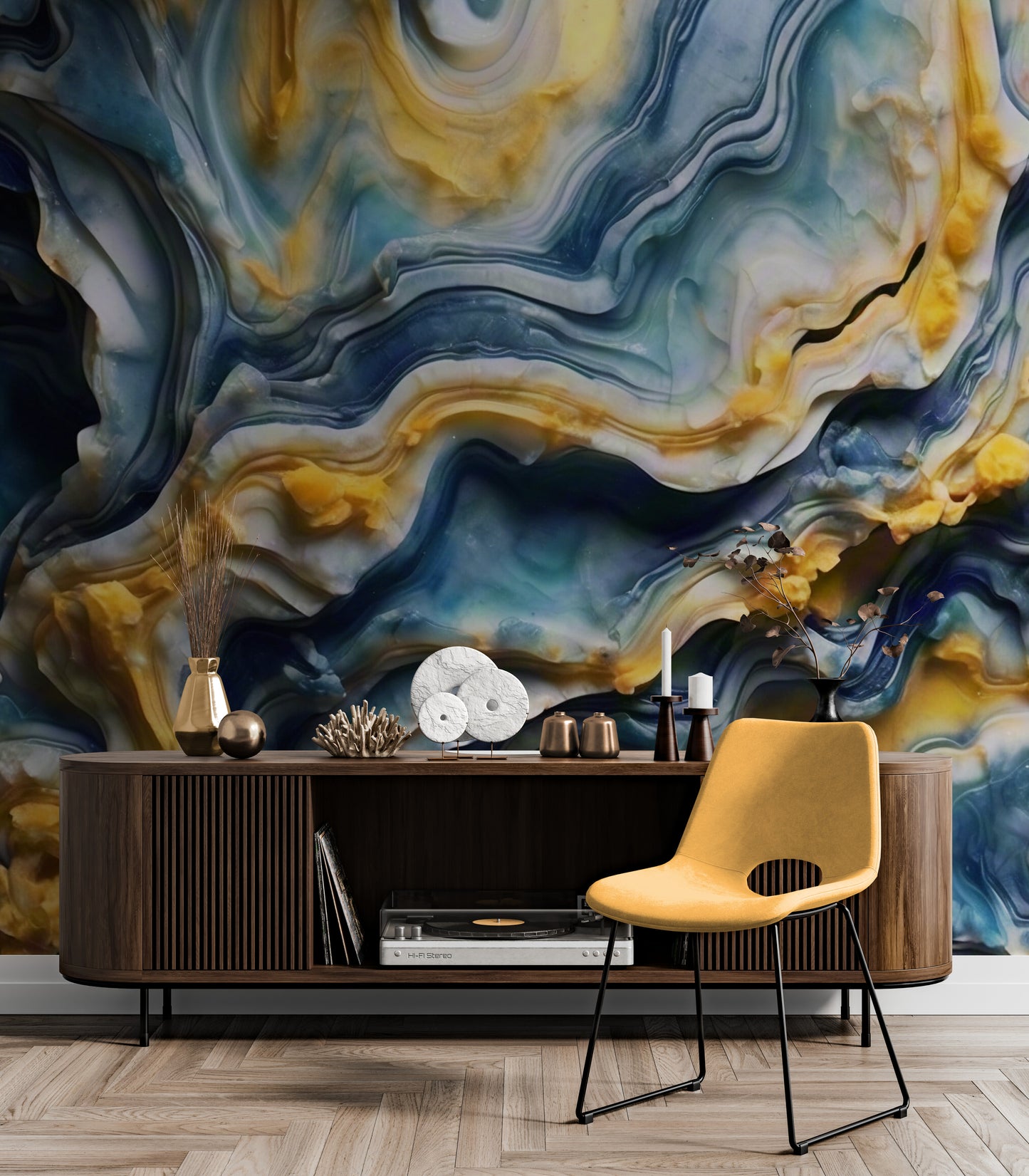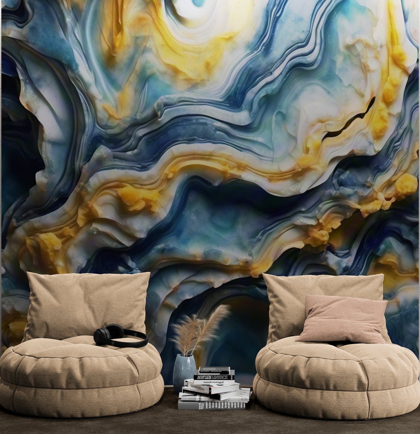 Extra große abstrakte Tapete, 3D-Effekt-Tapete, blaues und gelbes Wandbild, abnehmbare Tapete, Akzent-Wandbild