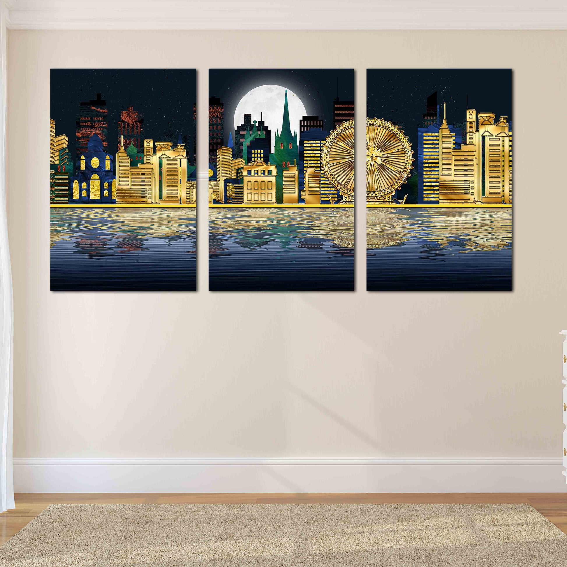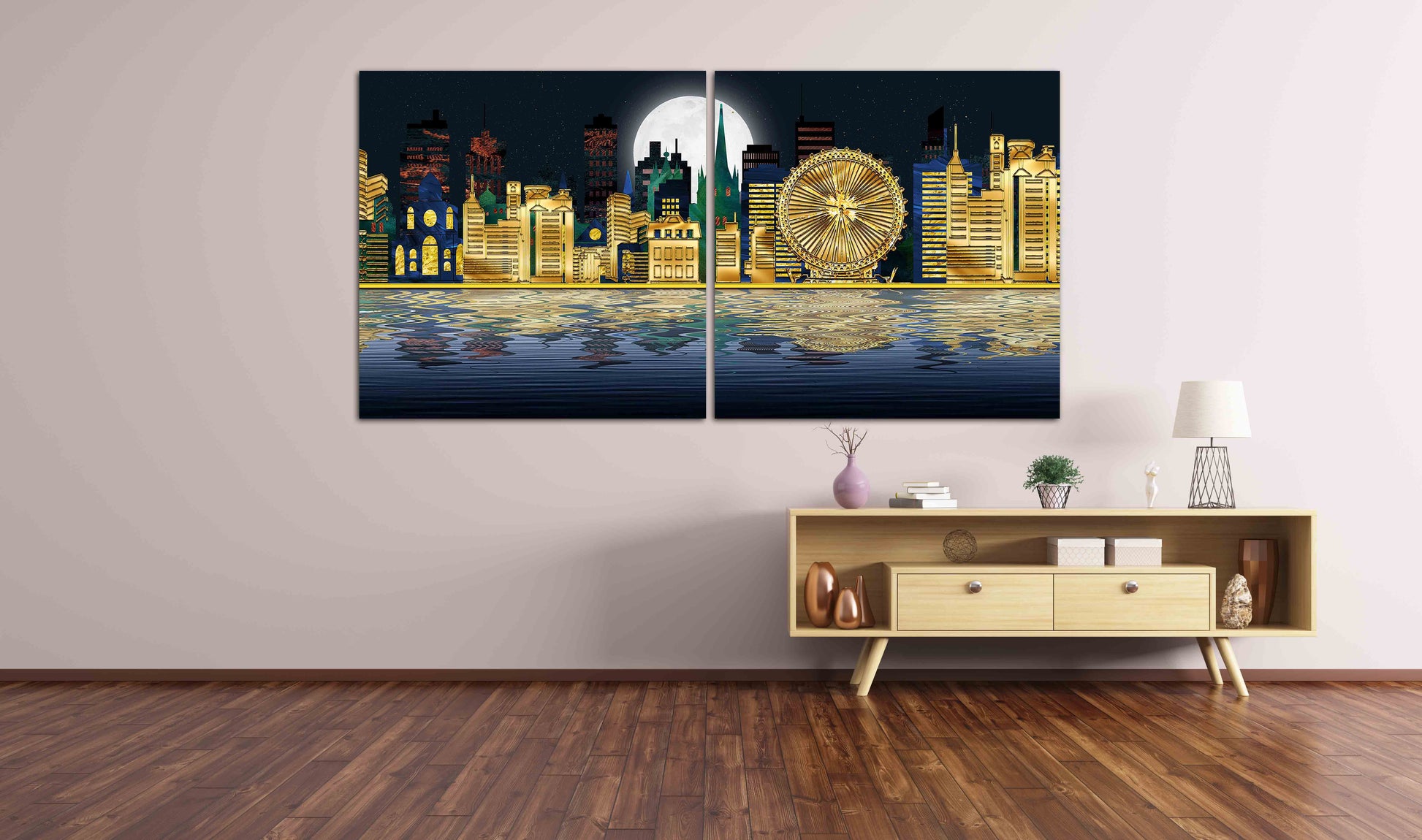 Stadt bei Nacht-Dekor, Leinwandgemälde, extragroße mehrteilige Wandkunst, Bilderrahmen, Wanddekoration für Zuhause, Nachtstadt, Wandcollage-Set