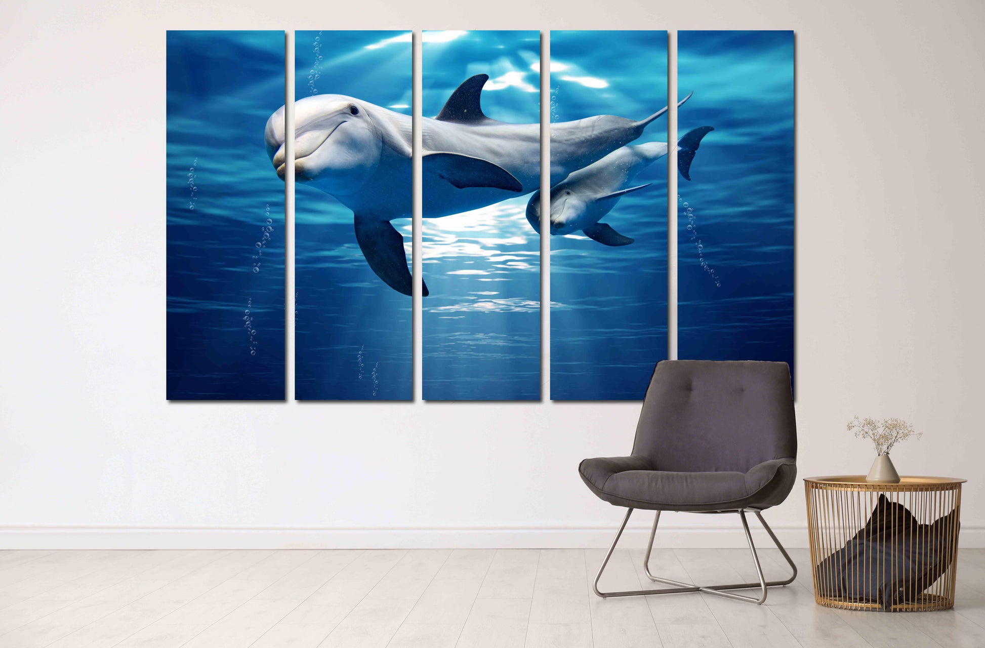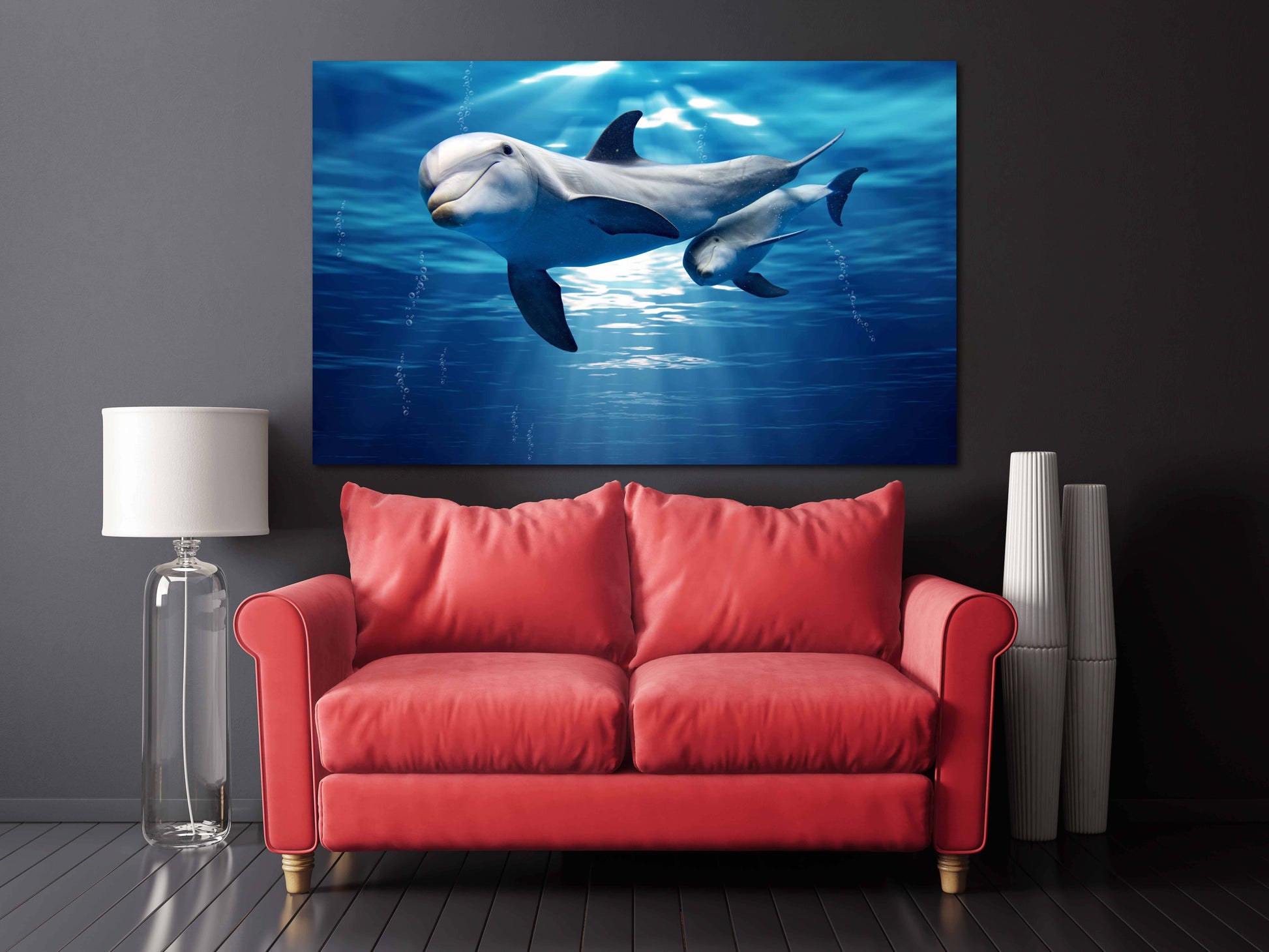 Delfin-Wandkunst aus Holz, Wanddekoration, Leinwandgemälde, helle Wandkunst, extra große Wandkunst, Delfin-Leinwandkunst, Meereswandkunst, Fischwandkunst