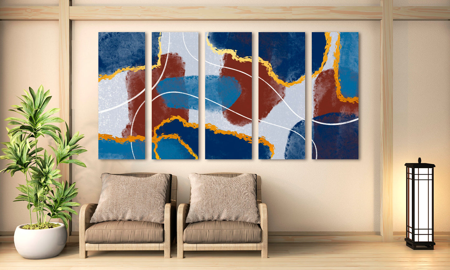 Extra großes abstraktes mehrteiliges Leinwandbild, modernes Set aus drei Drucken in Blau- und Brauntönen, farbenfrohes Wandkunstwerk als Geschenk