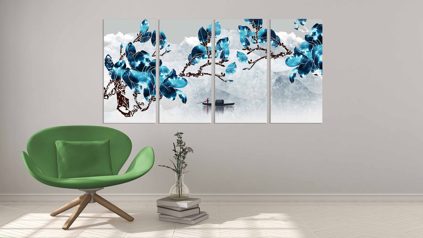 • Die Größe eines Gemäldesets, das aus mehreren Tafeln besteht, wird berechnet, indem die Tafeln zusammengezählt werden. Es wird empfohlen, solche Sets mit einem Abstand von 1–2 Zoll zwischen den Tafeln an die Wand zu hängen. Je größer die Bildkomponenten sind, desto größer ist der zulässige Abstand zwischen ihnen.