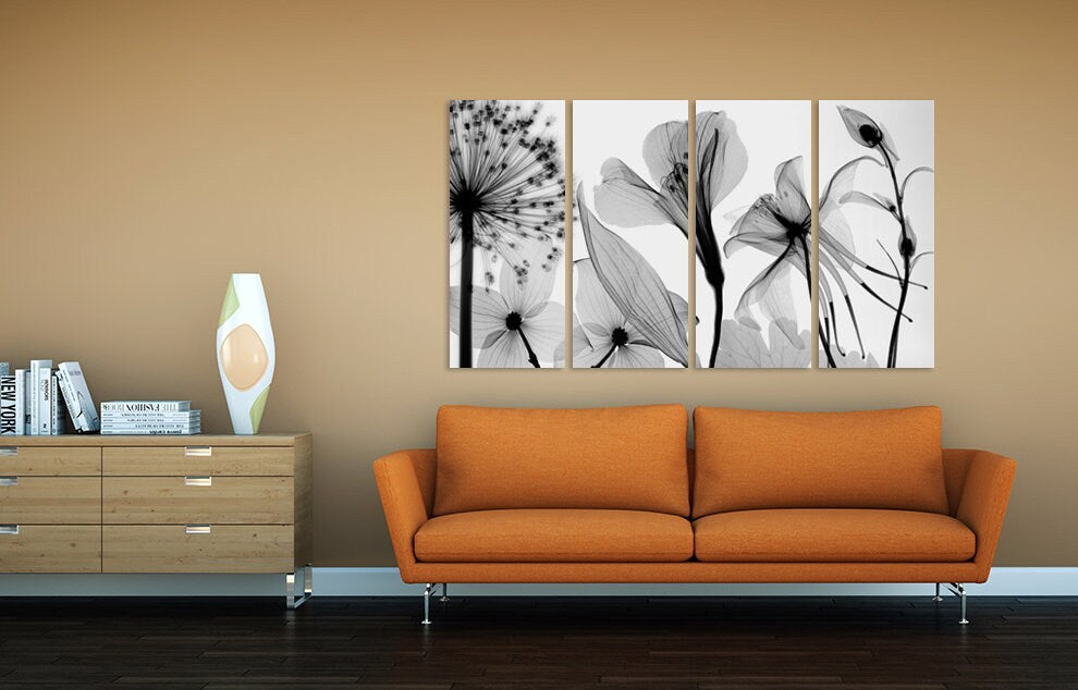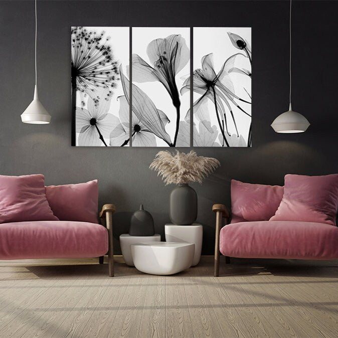 Blumen-Wandbilder auf Leinwand, Wanddekoration für Zuhause, Leinwandgemälde, Schwarz-Weiß-Kunst, botanische Gemälde, extra große Wandkunst