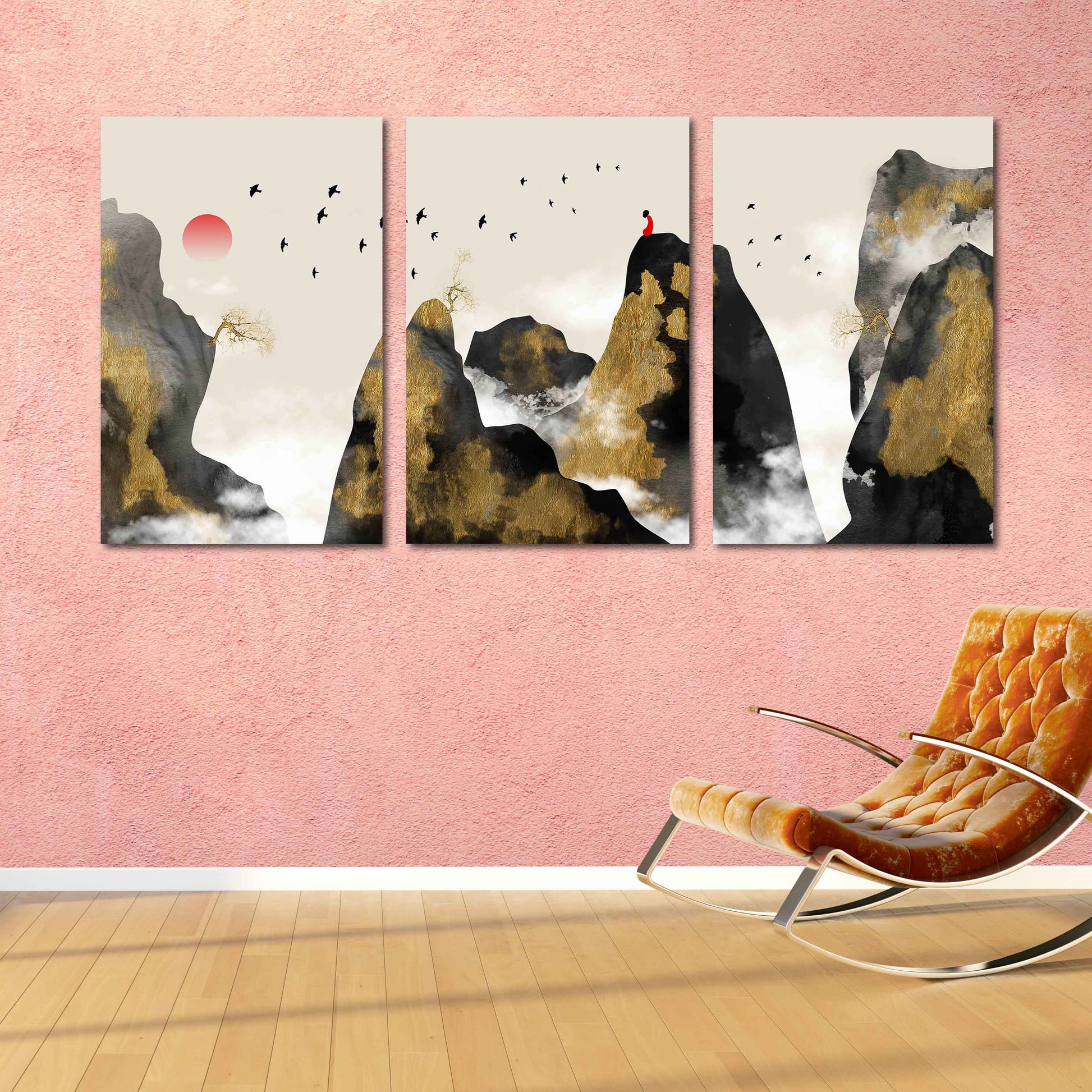 Gerahmte Wandkunst Berge Felsen und Berge 3-teilige Leinwand Wanddekoration im Freien Berge Wandkunst Leinwandgemälde