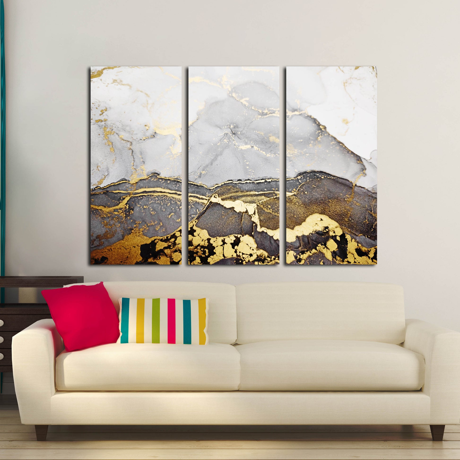 Gold- und schwarze Wandkunst Marmor Wanddekoration, Marmor Leinwand abstrakt, Abstrakte Wandkunst Gemälde auf Leinwand, ästhetische Raumdekoration Marmor Leinwand