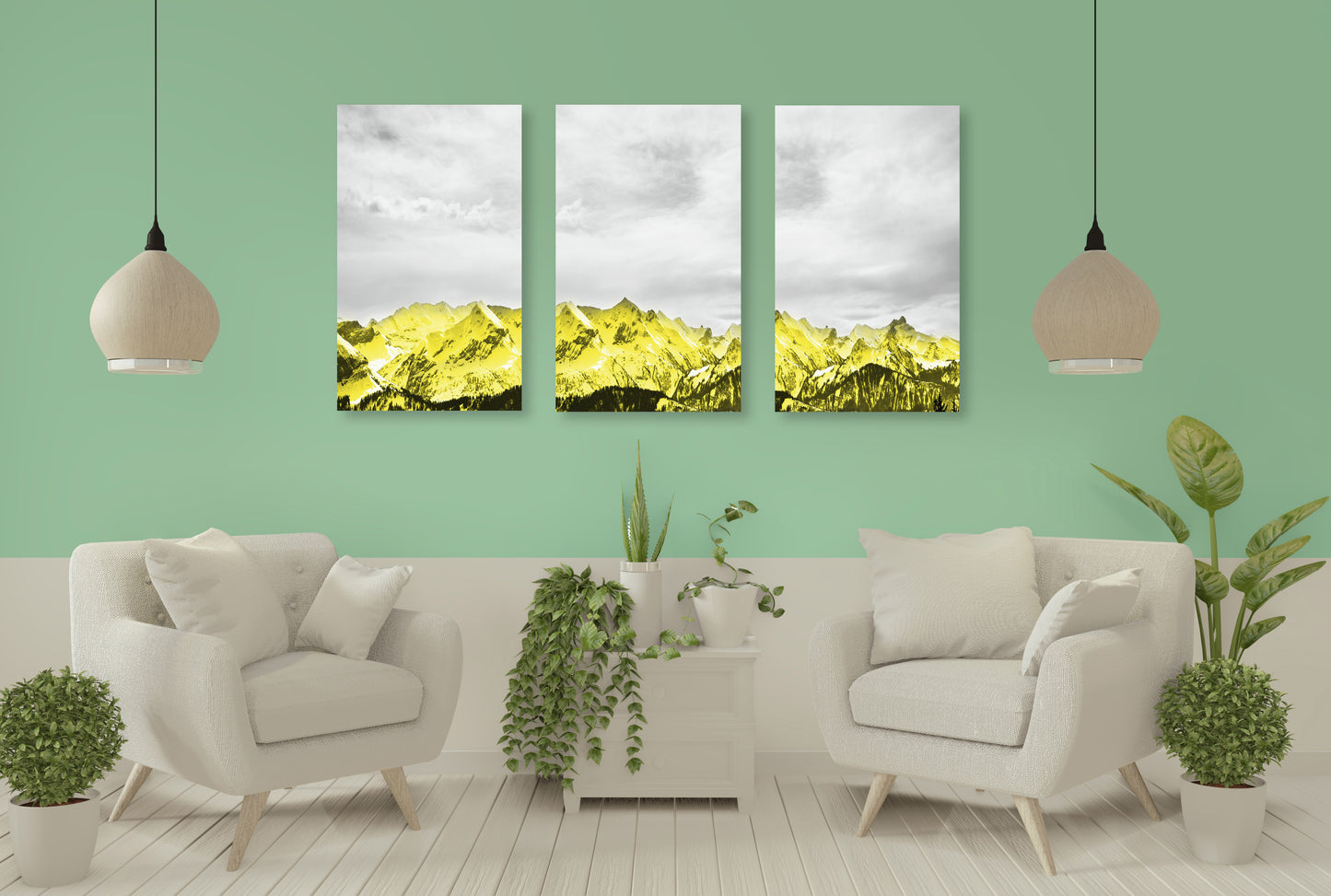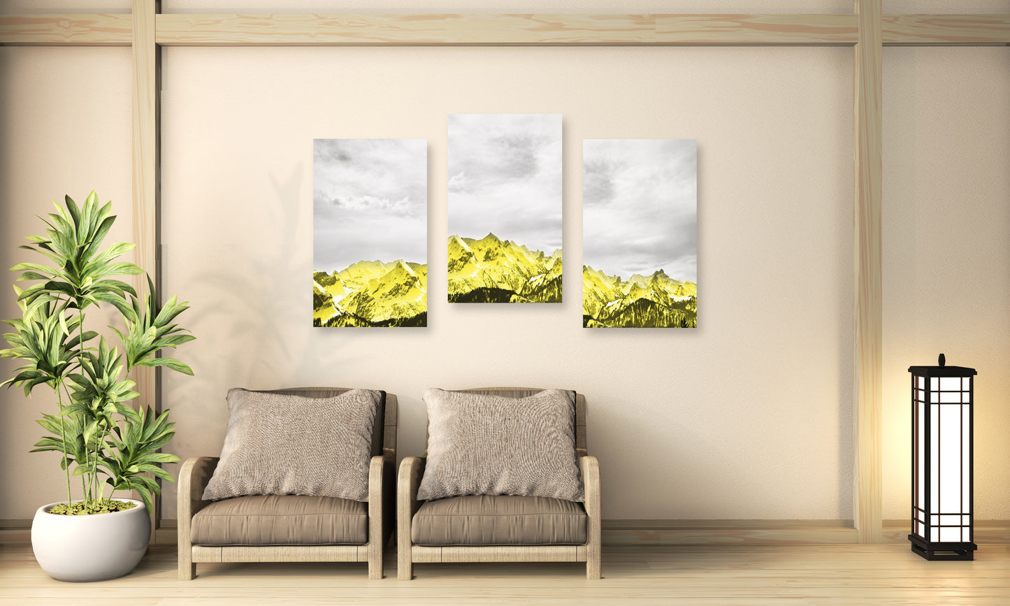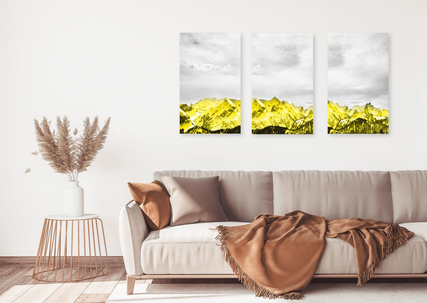 Goldene Berge Wandkunst, 3er Set Drucke Leinwandgemälde, Wandbilder Berge, Natur Wandkunst, Bergkunstdruck