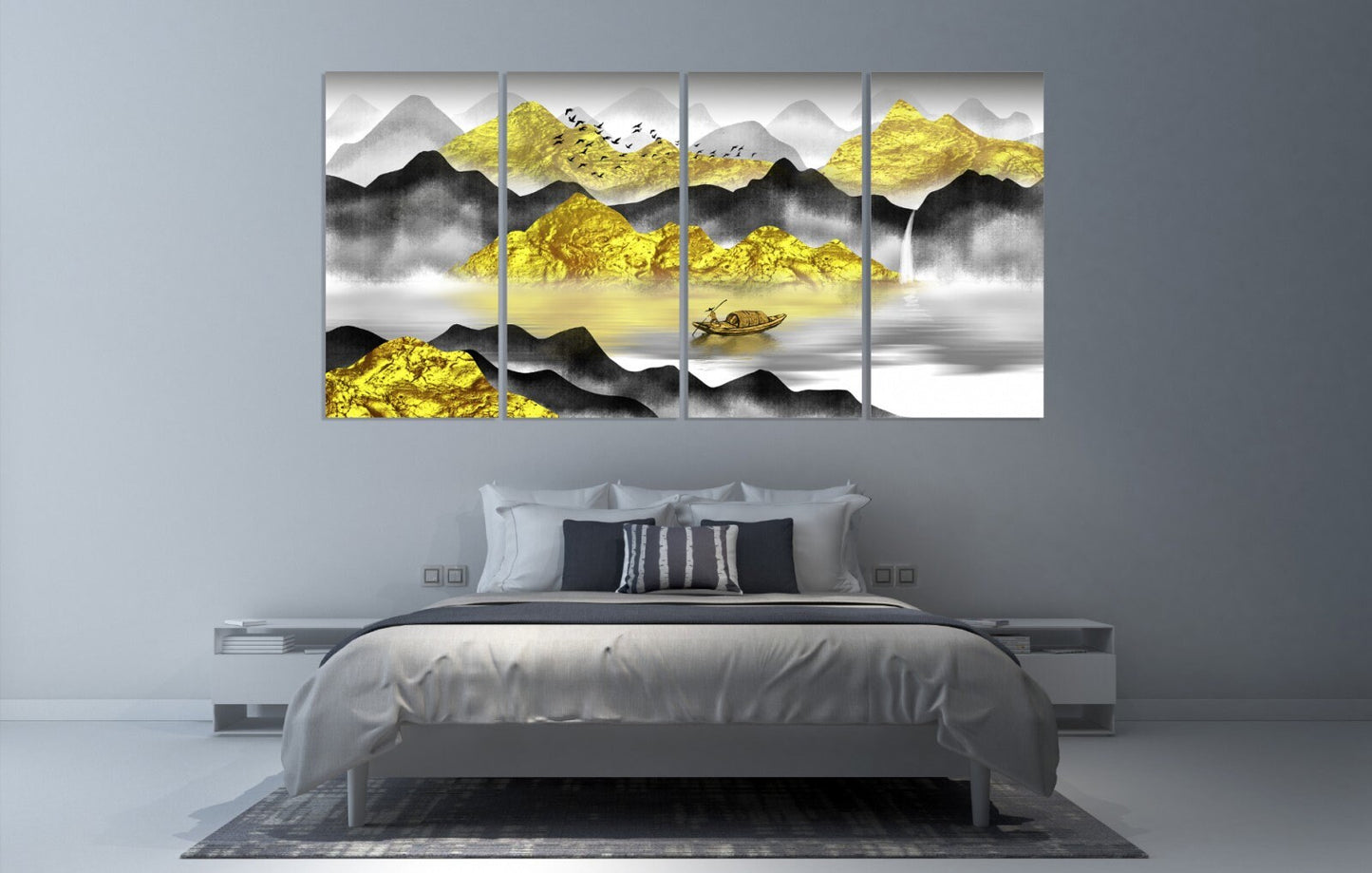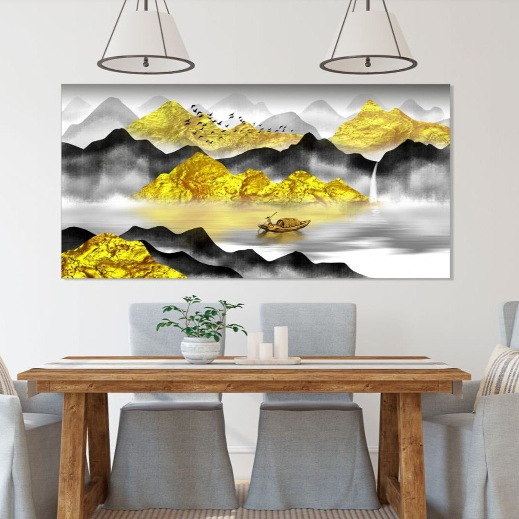 Graue und goldene Berge Wandkunst Gemälde auf Leinwand, Wandbilder Berge, Natur Wandkunst, Wohnwanddekoration, Bergkunstdruck