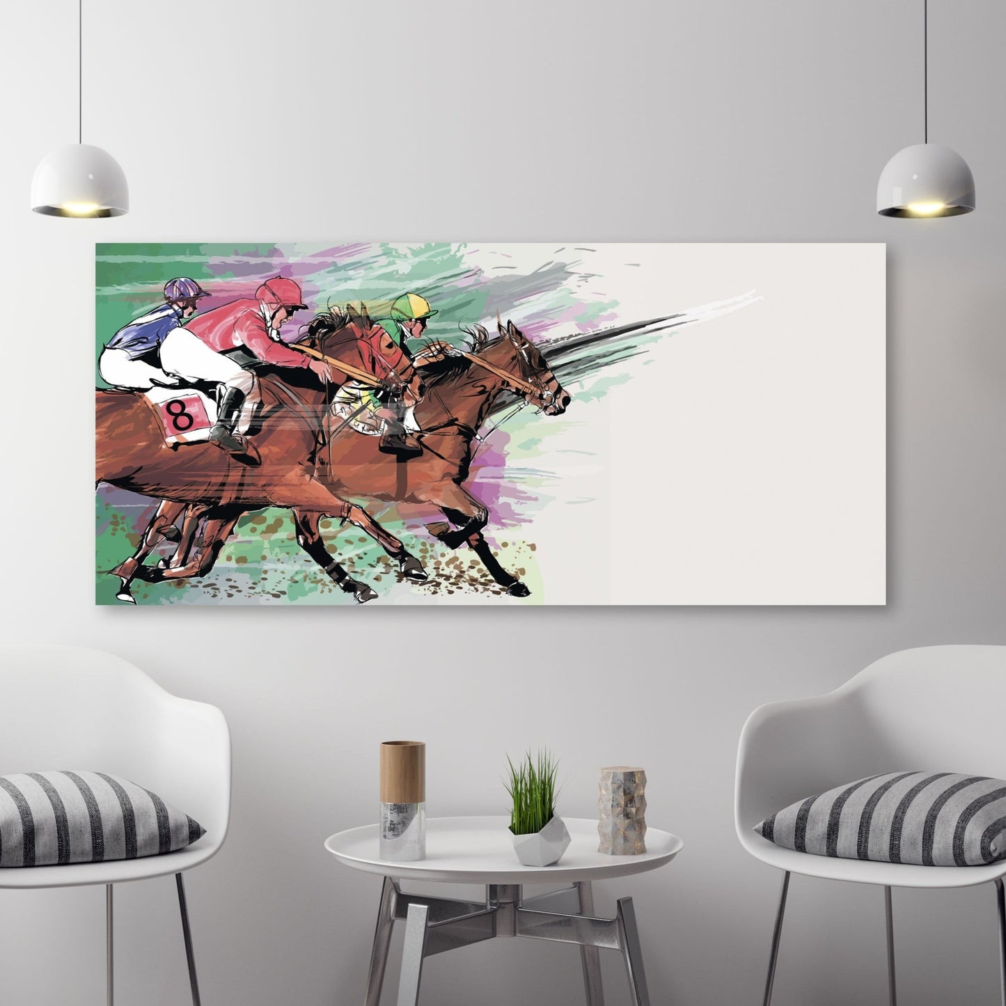Pferderennen-Kunst, Pferde-Wandkunst, erstaunliche handgezeichnete Pferdegemälde auf Leinwand, Leinwandgemälde, dekoratives Geschenk, Vatertagsgeschenk