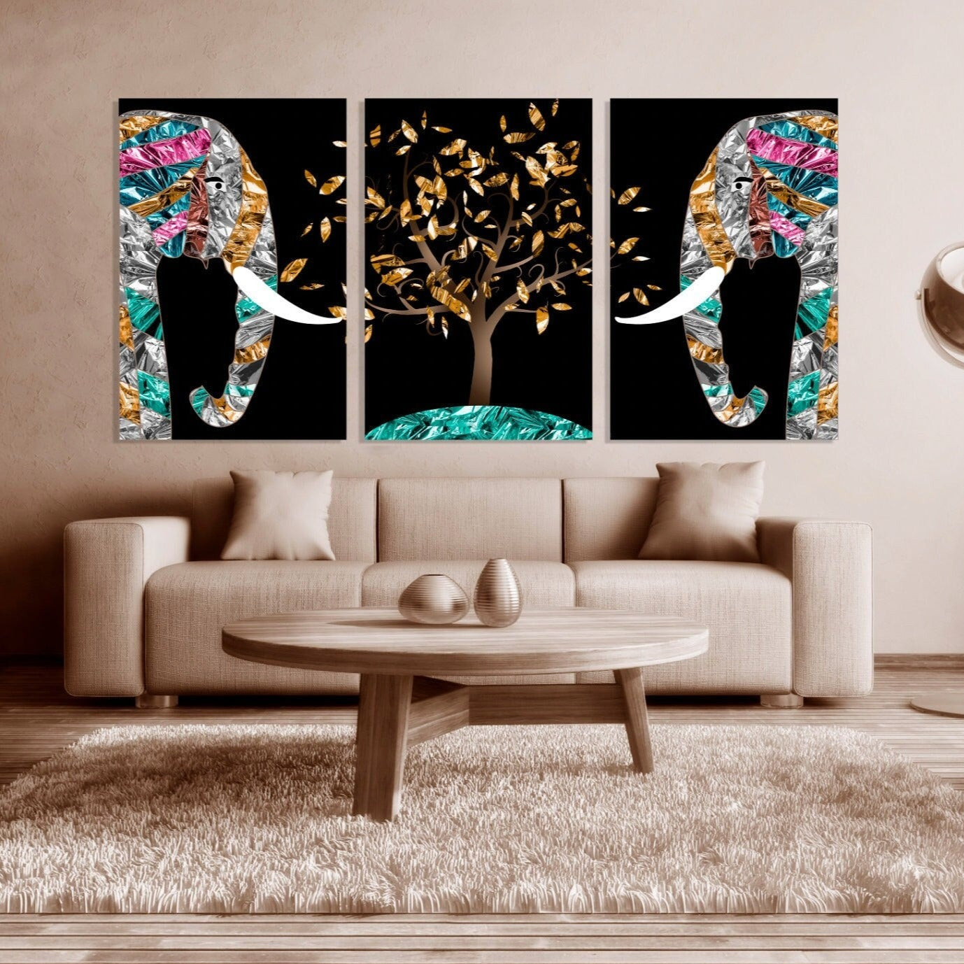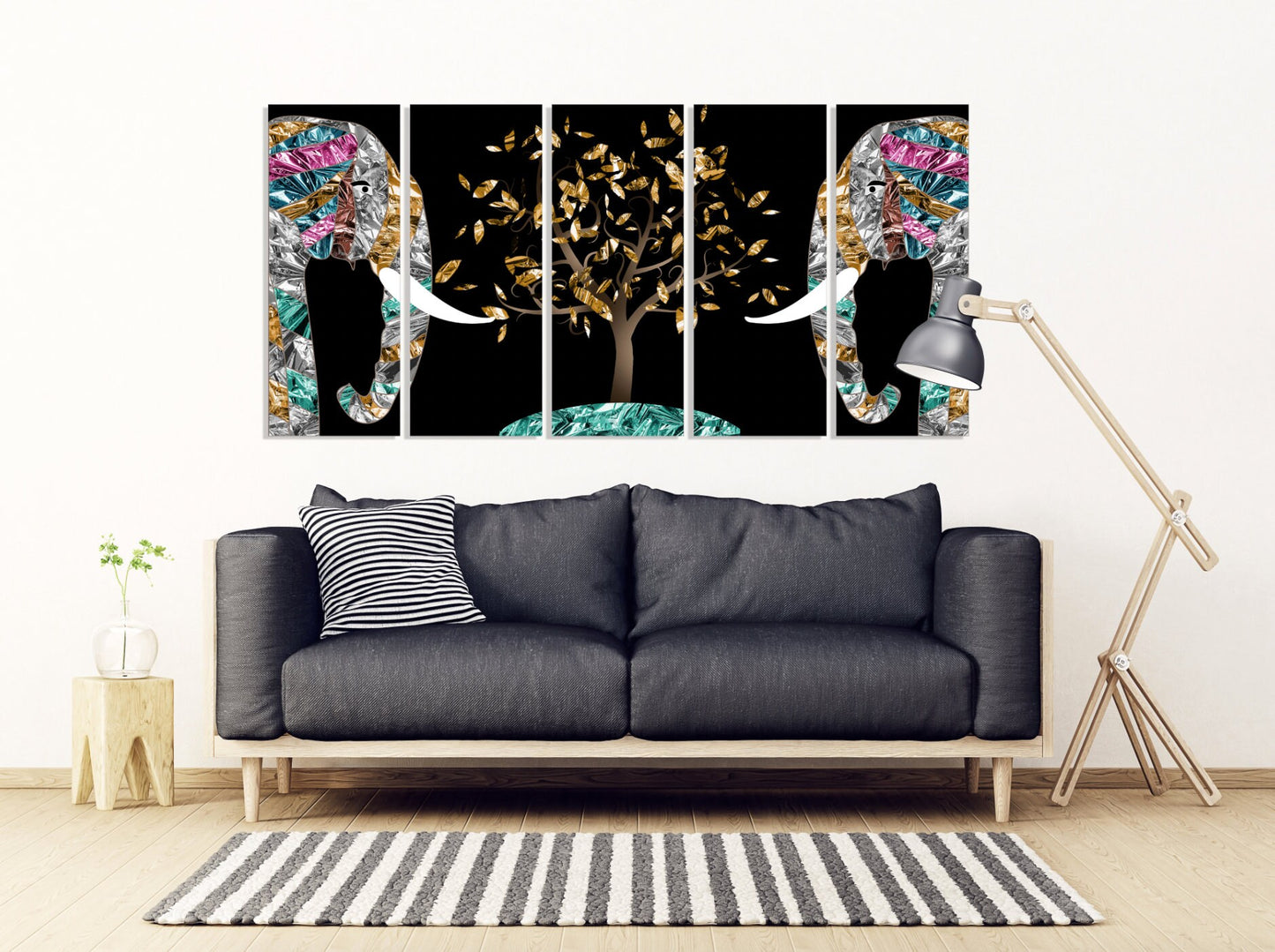 Jade-Elefant, Elefanten-Gemälde, indische Malerei, indische Kunst, Leinwandgemälde, große Wandbilder, Bilderrahmen, Heimwanddekor
