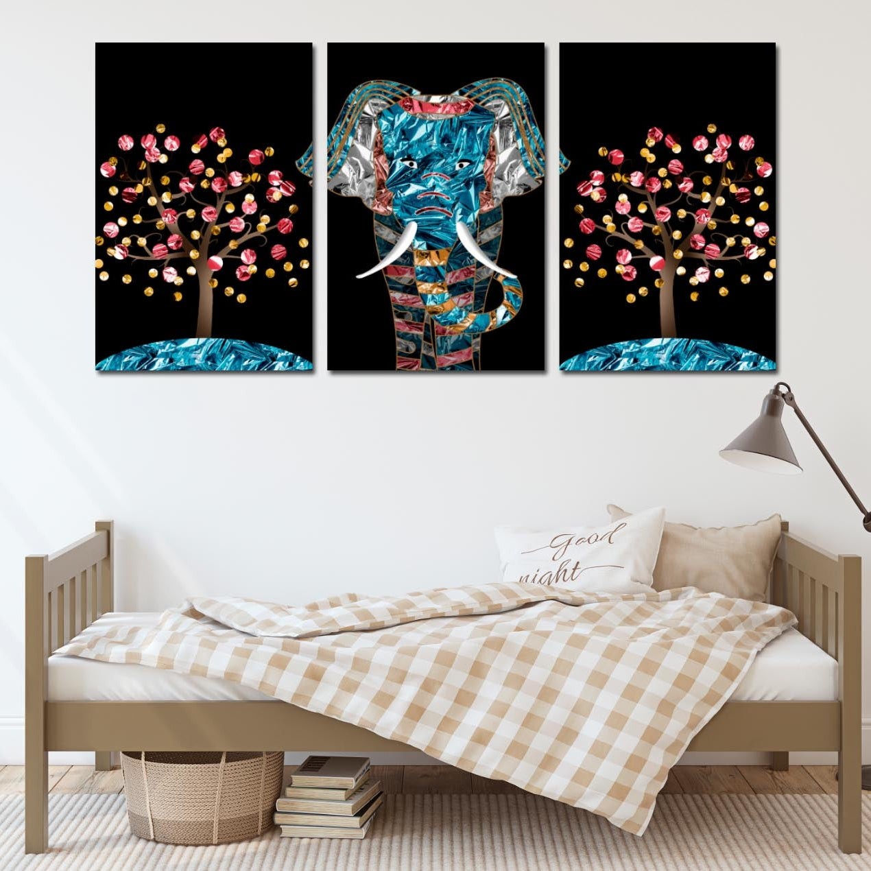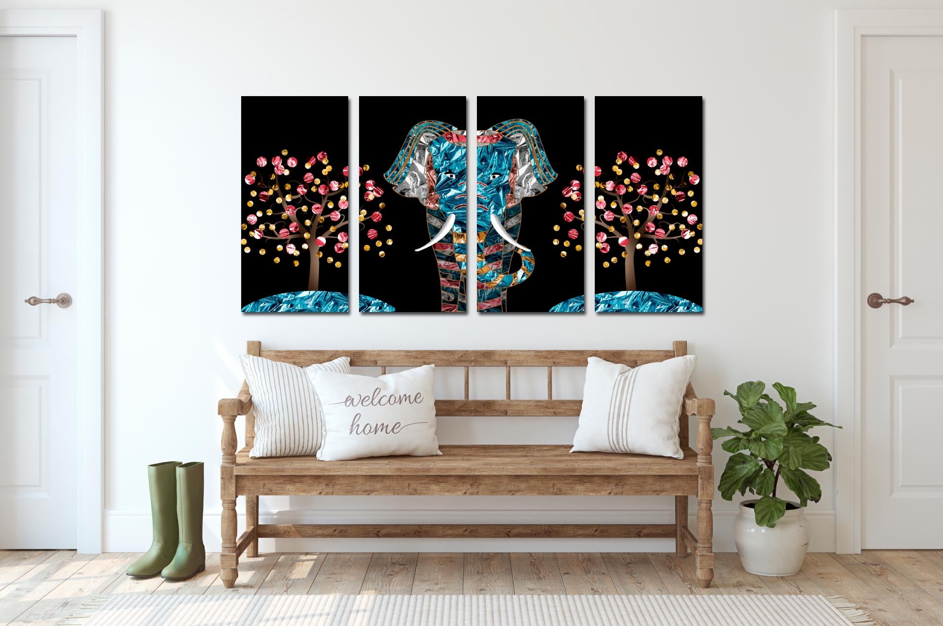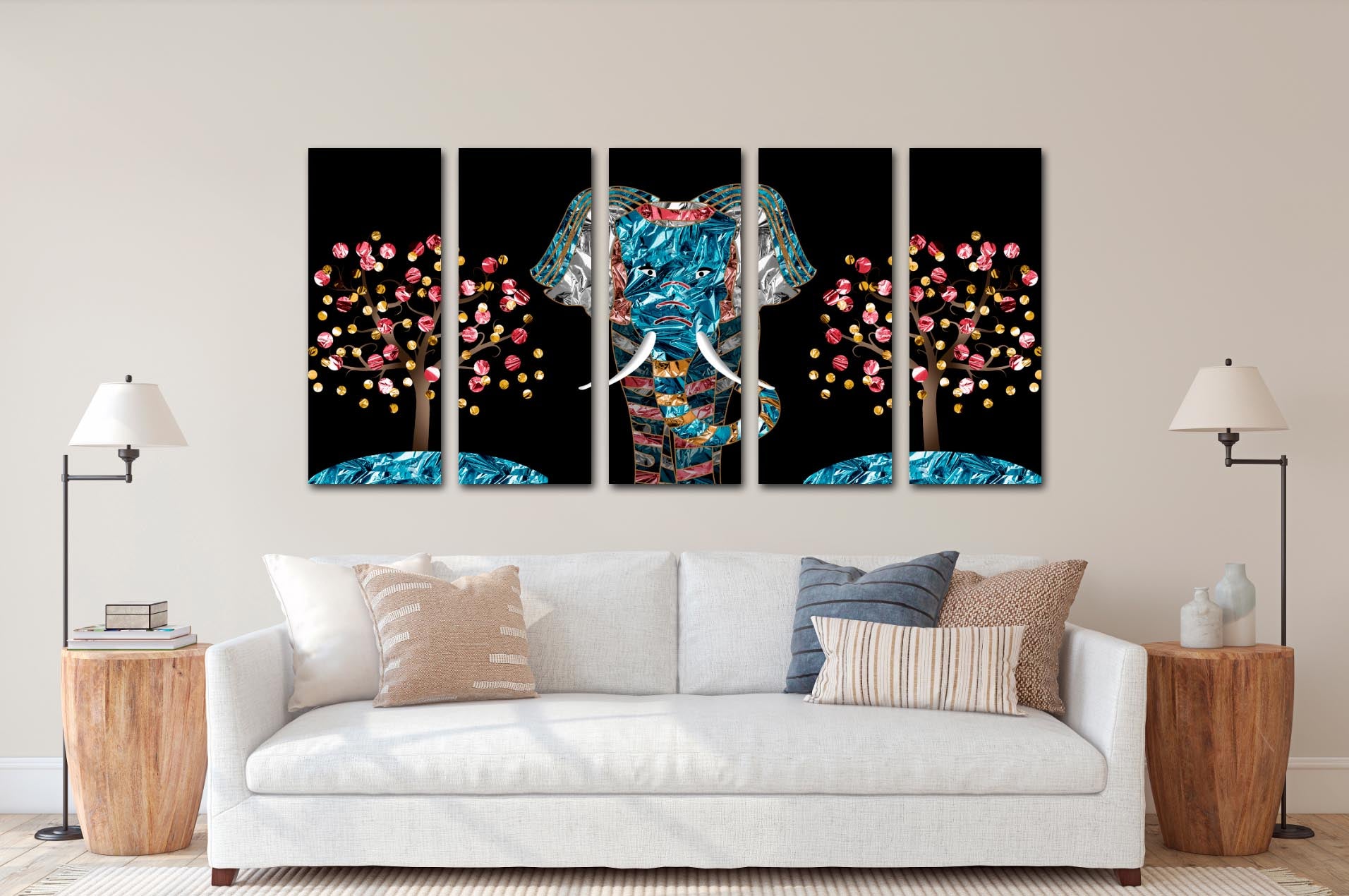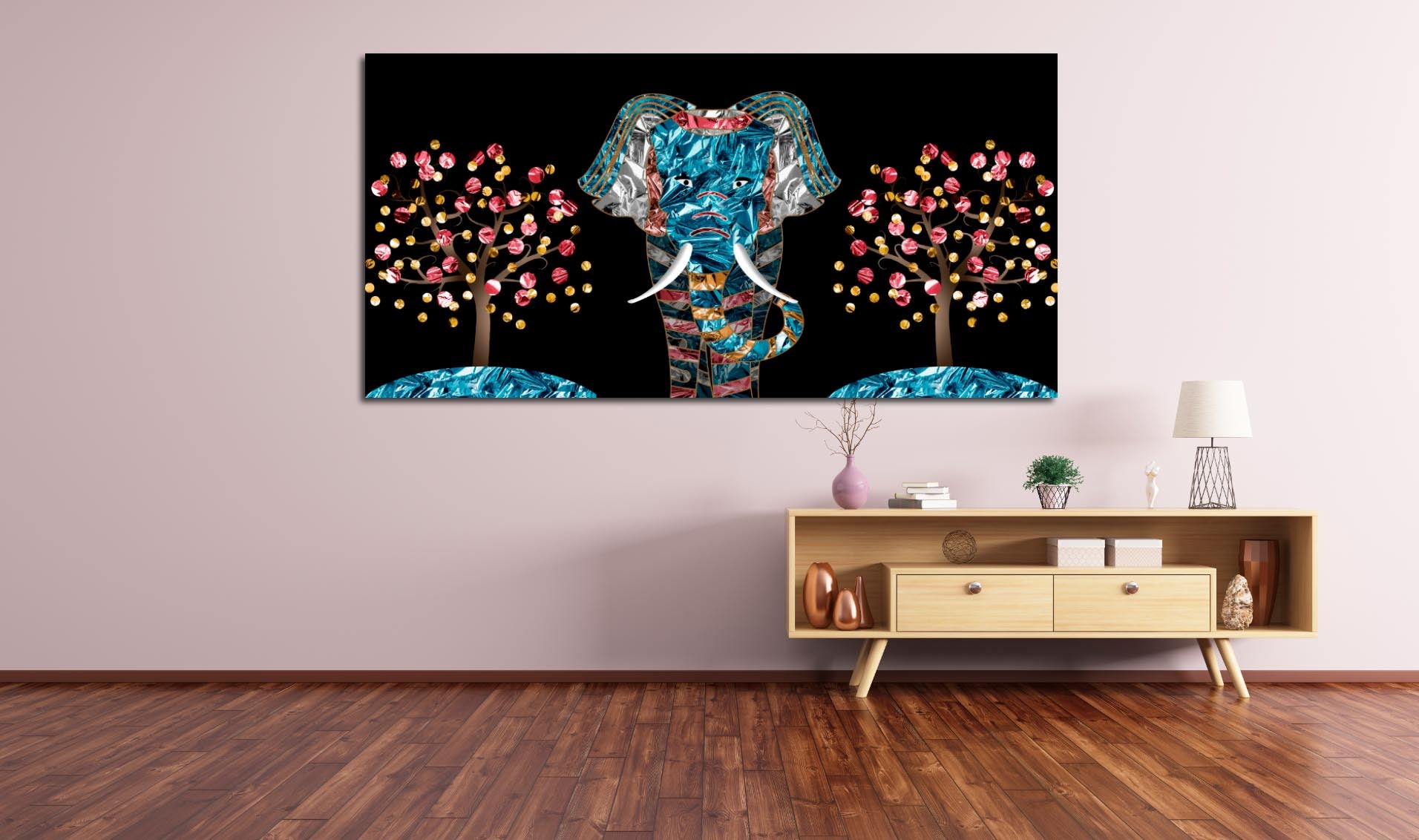 Jade-Elefant, Elefanten-Gemälde, indische Malerei, indische Kunst, Leinwandgemälde, große Wandbilder, Bilderrahmen, Heimwanddekor