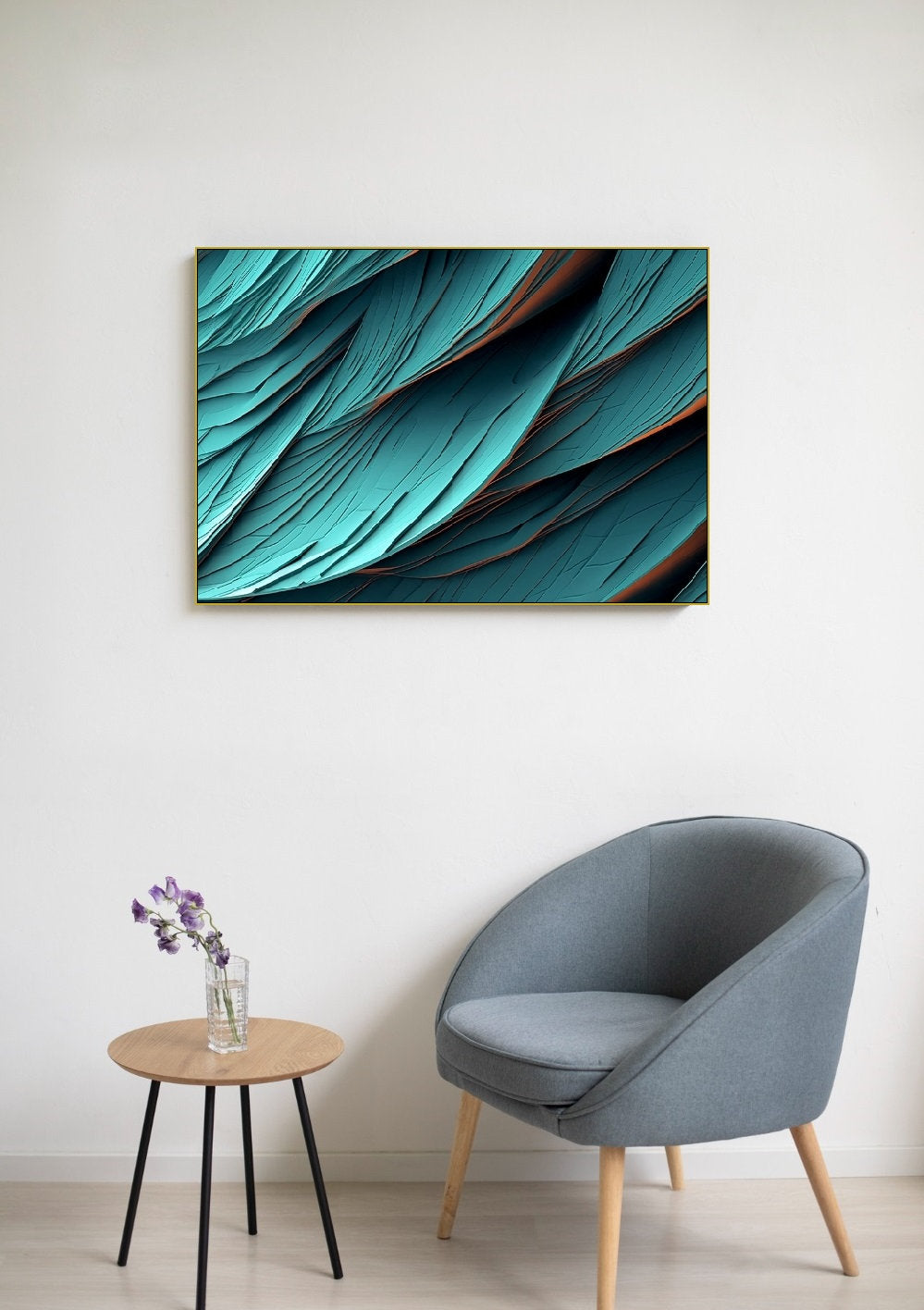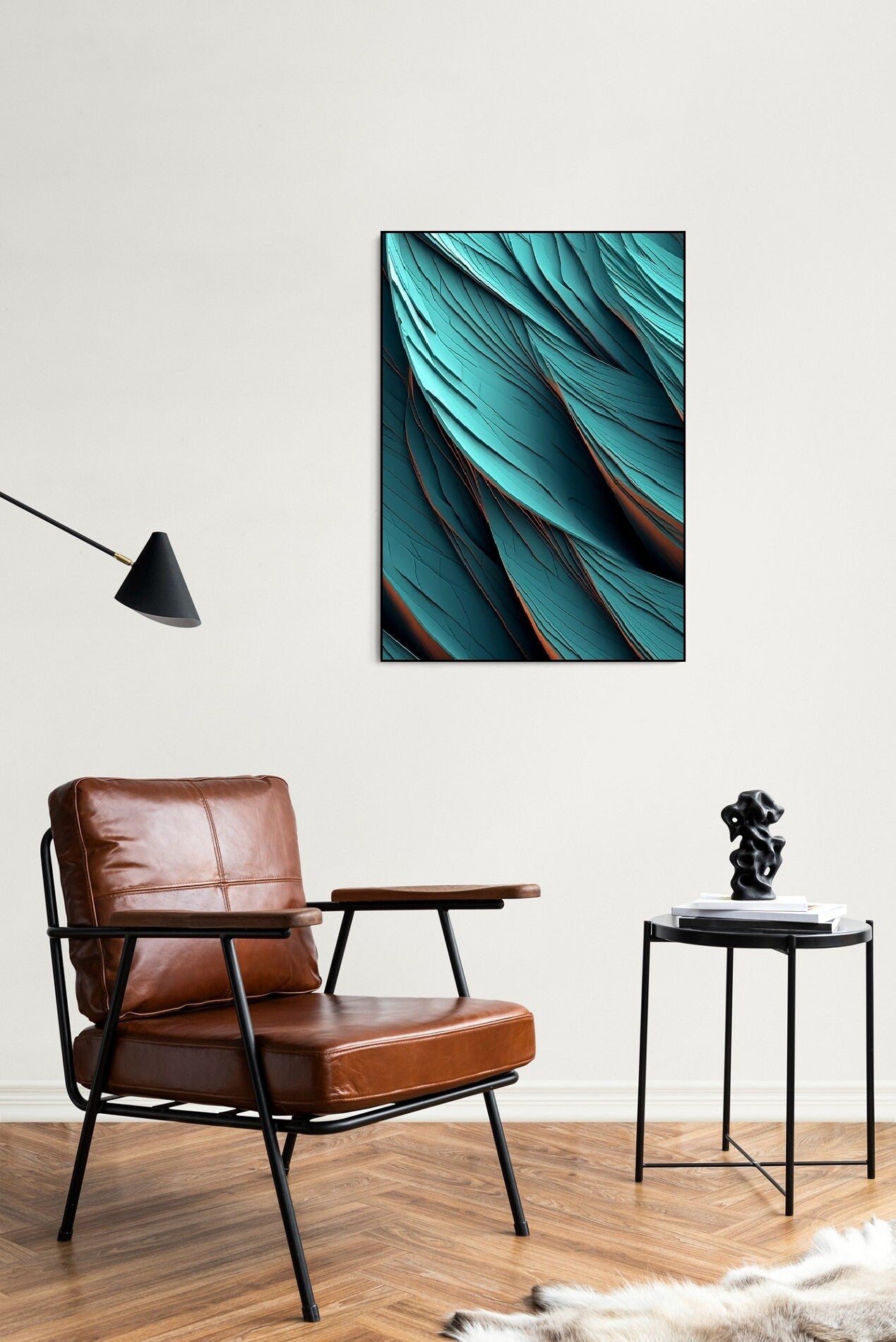 Großer abstrakter Leinwanddruck, 3D-Wandkunst, blaues Floater-Rahmen-Kunstwerk, konzeptuelles Wanddekor, gerahmte Wohnzimmer-Wandkunst