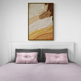 Abstraktes Ölgemälde-Effekt-Wandbild, gerahmter 3D-Effekt-Leinwanddruck, Kunstwerk in beige-orange und braunen Farben, Goldrahmen-Wandbild, Geschenk für ihn