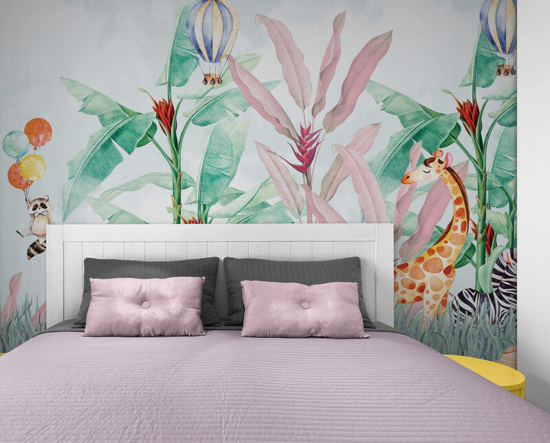 Kindertapete mit botanischem Bild, abziehbare und aufklebbare Kinderzimmertapete, temporäres Wandbild fürs Kinderzimmer